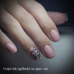 Ako želite imati lijepe i uredne nokte odgovarajuće dužine a ne želite stavljati nastavke ovo je idealno rješenje za Vas. Visokovrijedni, polimerizacijski i profesionalno ispitani gelova za modelažu, bez kiseline, neutralne boje i mirisa, stabilne konzinstencije, optimalnog prianjana na prirodni keratin, kontrolirane kvalitete. U kombinacij kvalitetnih gelova i iskustva od 8 godina garantiramo Vam izradu prekrasnih prirodnih noktiju. Ovaj tretman uključuje geliranje noktiju, trajni french ili nail art.